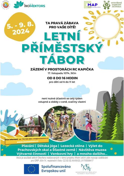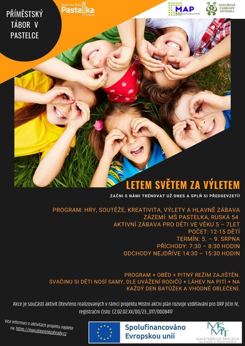 V rámci projektu MAP pro ORP Jičín IV máme možnost podpořit příměstské tábory realizované na území ORP Jičín. Domluvili jsme se s některými organizacemi (školami či organizacemi zabývajícími se vzděláváním) a podpořili jsme jim jednoho vedoucího příměstského tábora, který se zapojil do organizace a přípravy programu pro děti.