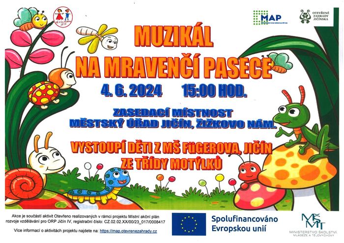 Děti z MŠ Fügnerova Jičín si připravily pro dědečky a babičky muzikálové představení, které se uskuteční v zasedací místnosti MěÚ Jičín, Žižkovo nám.