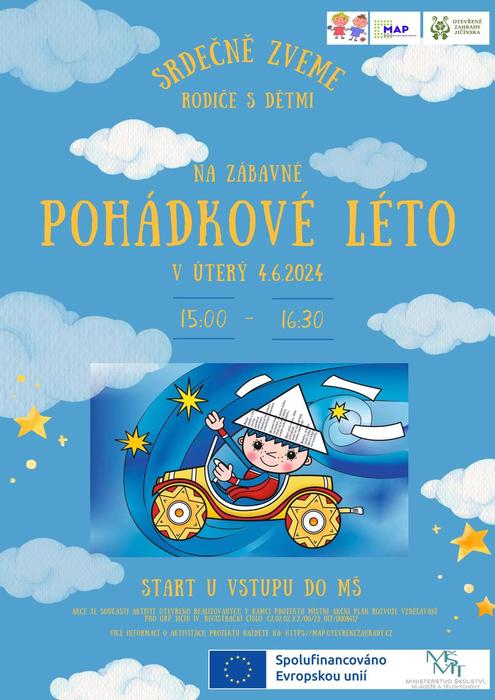 MŠ Máj, Jičín, Pod Koželuhy 171 pořádá k oslavě dne dětí pohádkovou stezku plnou pohádkových postav, úkolů, dílniček a atrakcí.