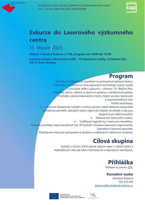 - Návštěva ELI Beamlines (zaměření na průmyslové aplikace laseru).