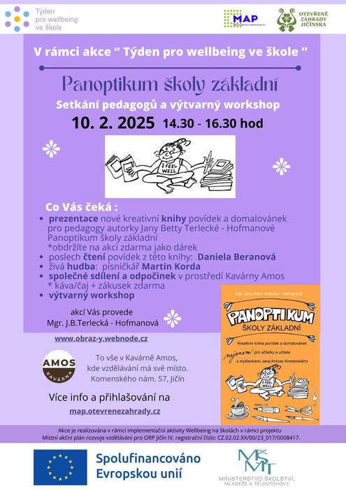 V rámci projektu Místní akční plán rozvoje vzdělávání pro ORP Jičín IV jsme pro Vás připravili akci “Panoptikum školy základní", která proběhne v rámci celorepublikového projektu "Týden pro wellbeing ve škole".