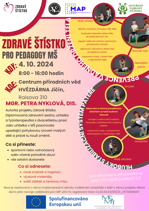 Také se bojíte, že nesprávně vedeným cvičením dětem ubližujete? Už nemusíte. Naučíme vás, jak dětem zajistit zdravý pohybový rozvoj. Ve svých kurzech lektorka totiž poprvé odhaluji zábavné cviky a ověřené triky, které propojují hluboké zkušenosti z oboru fyzioterapie s dlouholetou praxí v mateřské škole.