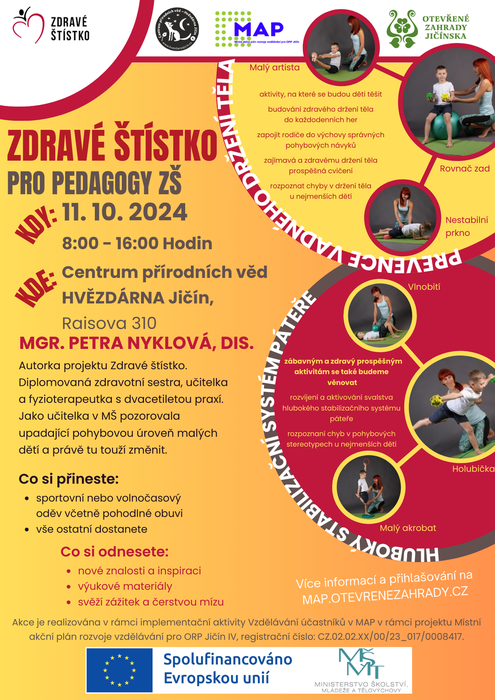 Také se bojíte, že nesprávně vedeným cvičením dětem ubližujete? Už nemusíte. Naučíme vás, jak dětem zajistit zdravý pohybový rozvoj. Ve svých kurzech lektorka totiž poprvé odhaluje zábavné cviky a ověřené triky, které propojují hluboké zkušenosti z oboru fyzioterapie s dlouholetou praxí v mateřské škole.